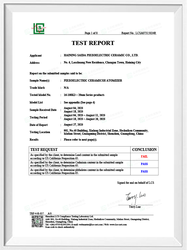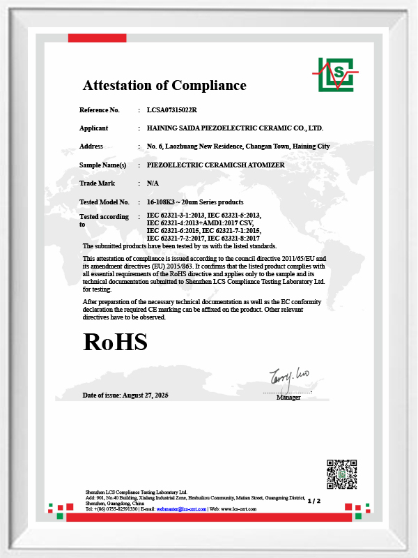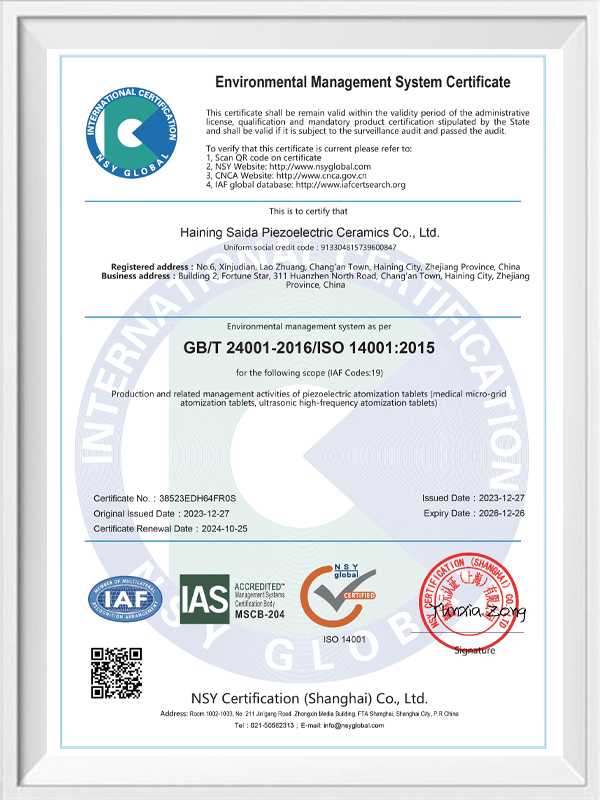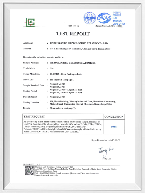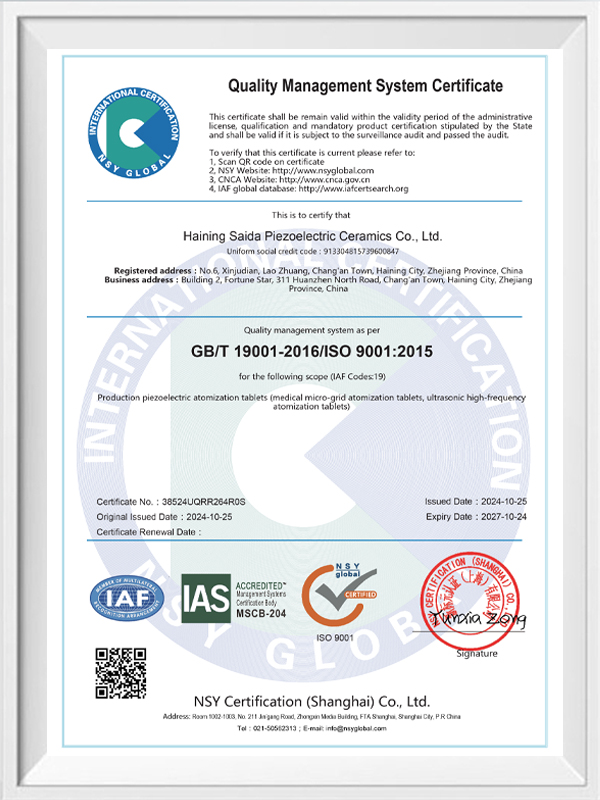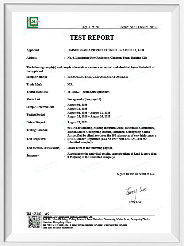Bleifreie piezoelektrische Keramik ist als „Perle“ der piezoelektrischen Industrie bekannt. In Zukunft werden piezoelektrische Keramiken auf Bleibasis, die bereits die gleiche piezoelektrische Leistung aufweisen, und piezoelektrische Platten auf Bleibasis in allen Aspekten schrittweise ersetzt. Es ist völlig ungiftig, harmlos, sicher und umweltfreundlich, enthält kein Blei, Antimon und andere Schwermetalle und andere Rohs-beschränkte Elemente, hohe Curie-Temperatur Tc-328 ° C, sehr geringer elektrischer Verlust TangentLoss Daher haben bleifreie piezoelektrische medizinische Zerstäubungschips einen großen kommerziellen Wert und universellen Wert. Wirklich ungiftige und umweltfreundliche bleifreie piezoelektrische Keramiken werden neben der umweltfreundlichen piezoelektrischen Leistung, die mit Keramiken auf Bleibasis vergleichbar ist, zu einer beliebten umweltfreundlichen piezoelektrischen Keramik. Nach Jahren der Forschung und Entwicklung, nach kontinuierlichen Tests und Experimenten ist es dem Unternehmen gelungen, den bleifreien medizinischen Zerstäubungschip so herzustellen, dass er die gleiche Zerstäubungsmenge wie der bleibasierte Zerstäubungschip und die gleichen Partikeldurchmesseranforderungen erreicht. Der bleifreie medizinische Mesh-Verneblerchip wird mit Sicherheit glänzen und eine breite Palette von Einsatzszenarien bieten.